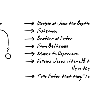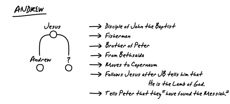 So, who were Jesus’s first disciples, and what do we know about them? Let’s look at John 1:29-51. In verse 35, we’re introduced to two disciples of John the Baptist: Andrew and some other guy. What do we know about Andrew?
