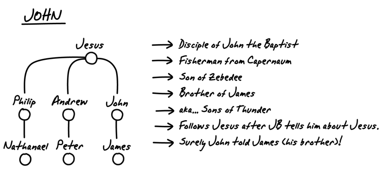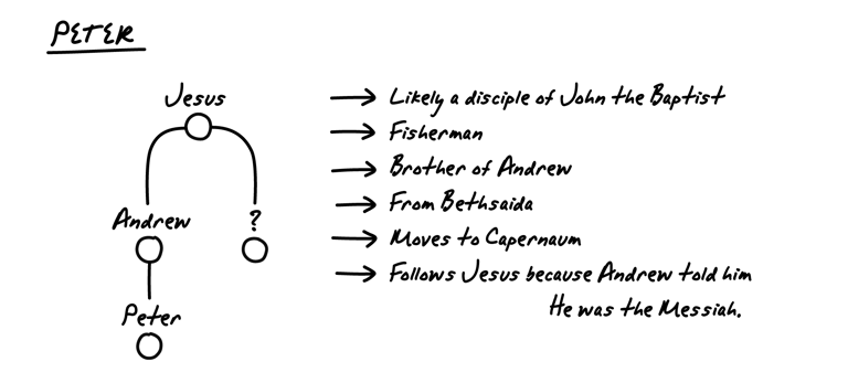 We’ve now been introduced to five of Jesus’s closest disciples (possibly six, but we don’t know when John would have been able to tell James), and these guys don’t seem to be all that random. They’re from the same region, some of them are related, some are business partners, and they’re all disciples of John the Baptist.